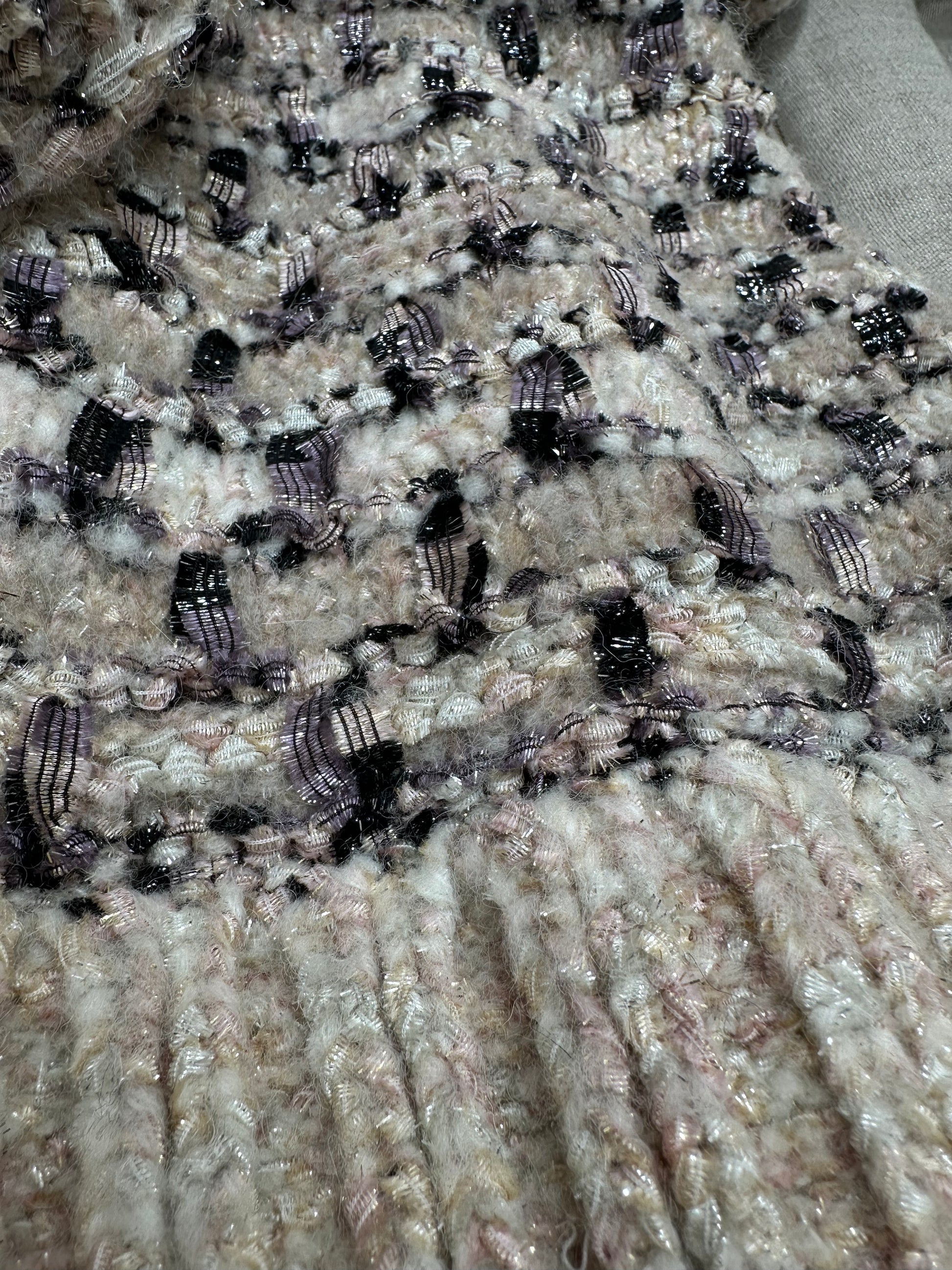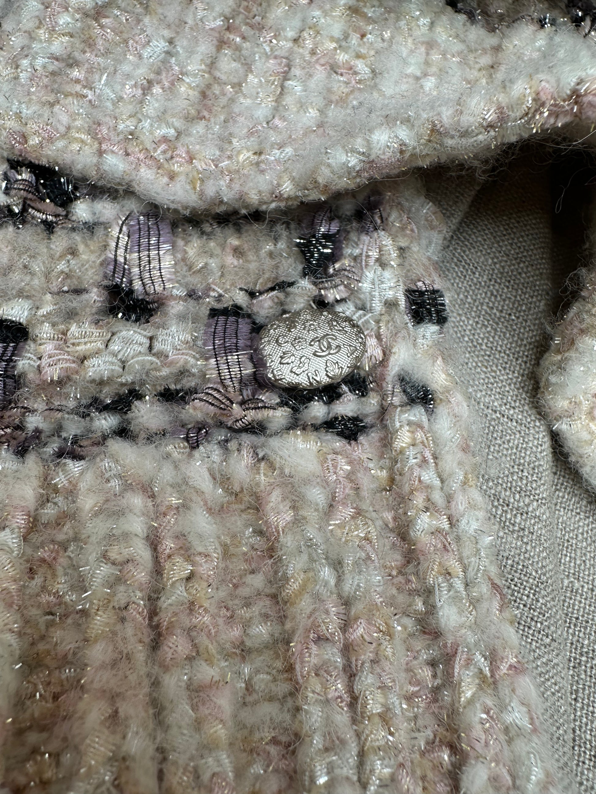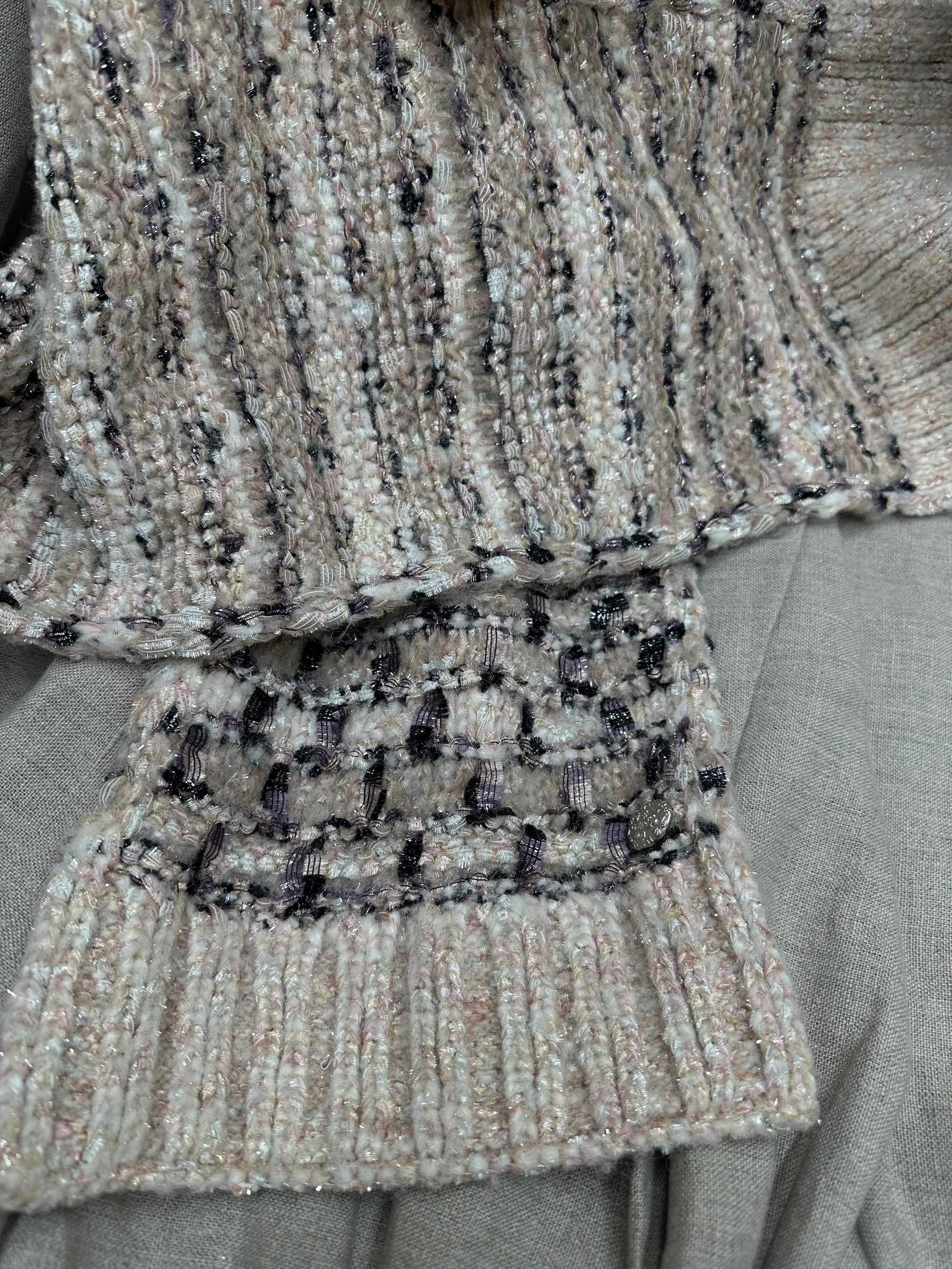 Stickad Chanel halsduk i rosa, beige, cremevit och svart med metallic inslag