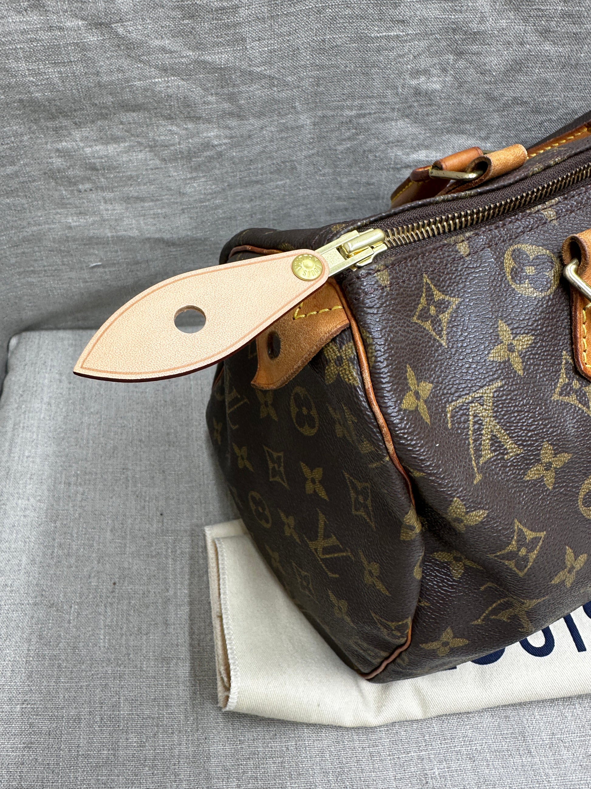 Reparation av dragflik, utbytt på Louis Vuitton butiken i Köpenhamn (kvitto kopia finns), samt fick en ny dustbag vid tillfället